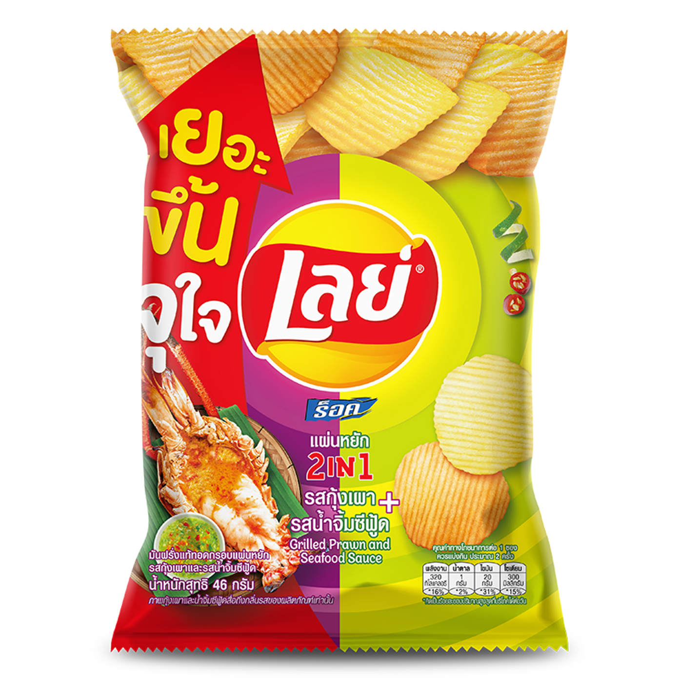 ເລຍ໌ ແຜ່ນຢັກ ລົດຊາດກຸ້ງເຜົາ + ນ້ຳຈິ້ມຊີຟູດ